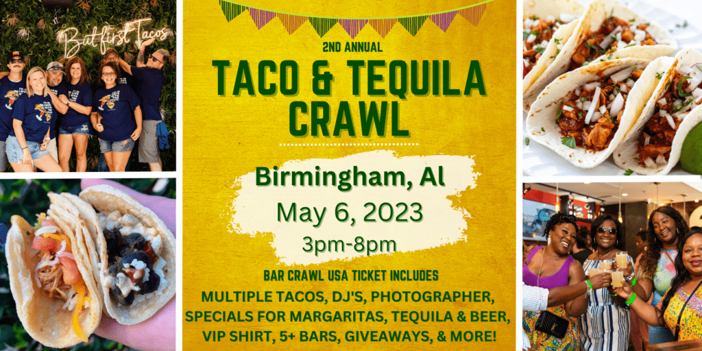 Since 2018 Bar Crawl USA & The Taco Crawl have joined together to bring the biggest & best Taco & Tequila Crawls around the nation, and we’re happy to announce that The 3rd Annual Birmingham Taco & Tequila Crawl is back in Birmingham, AL on May 6th this year! Enjoy eating tacos, sipping margaritas, taking tequila shots, and dancing your taco […]