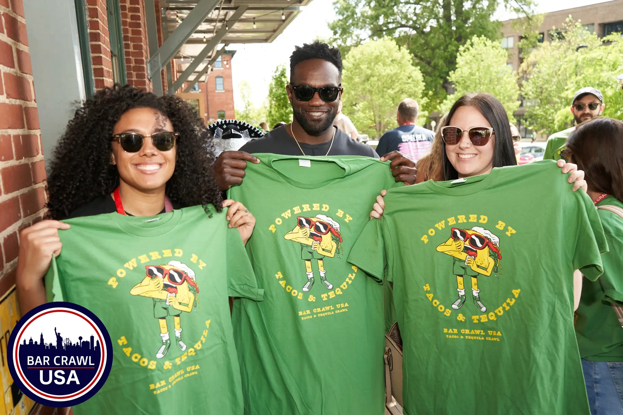 The best thing about our Birmingham bar crawl is that it kicks off with an exciting registration party where all crawlers gather. Unlike other events, we don’t just hand you a wristband and send you on your way. At the registration party, you’ll receive your lanyard with a detailed map, swag, and a full list of drink specials, entertainment, and participating bars. Depending on our unique Bar Crawl USA theme, you may also get a welcome shot or taco tokens to redeem at participating bars like Moe’s Original BBQ, The Lumbar, Mayawell Bar, The Mayor, Slice Pizza & Brew, Denim on 7th, Innisfree Pub, Tin Roof, SideBar, and Mojo Pub.